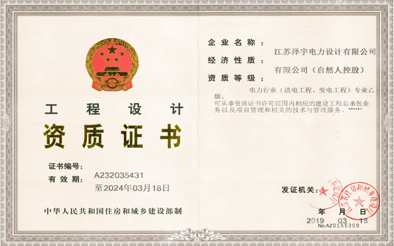 設計院獲得電力行業(yè)專業(yè)乙級資質